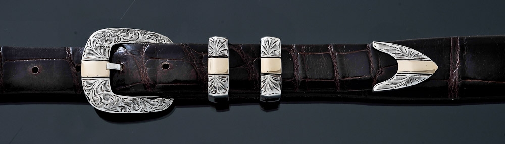 EG38 1" floral engraved 4pc buckle with 14K gold band