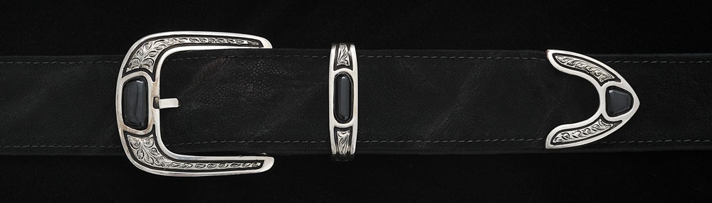 EC62JA, Penasco feather engraved, three piece set with Black Jade on Black Sueded Elephant