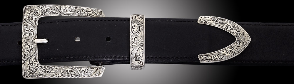 EF67A Santa Fe, Fine Engraved, 3 piece buckle set on Black Spanish Calf
